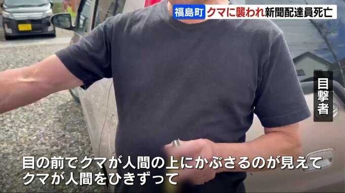 「叫ぶ声が聞こえて、『どうしたんだろう』と思って玄関のドアを開けたら、目の前にクマが人間の上にかぶさるようなかたちの状態が見えた。そのうちにクマが人間をひきずって」