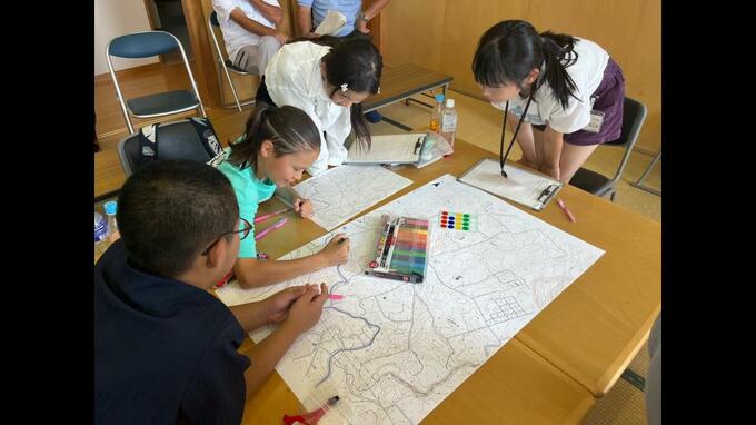 参加した小学生は「古い建物があったり、危ないところが分かった。自分たちの町をもっと知りたい」とか「いろんな場所を見て回ったけど、実際に地図にするのは難しい」などと話し、地域を見つめていました。