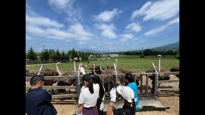 魅力班は、ダチョウ牧場や湧き水の汲み場など近藤地区ならではの場所を調査し、自分たちの町の特色を記録しました。