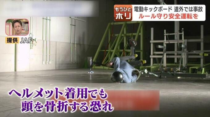 「歩行者が優先になりますので、無理な運転はしない。近づきすぎないというところも注意していただいた方がいいと。立って乗車しているので、どうしても頭のほうから道路に倒れこんで行きやすい。ヘルメットは必ず着用して運転していただきたい」