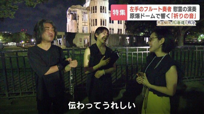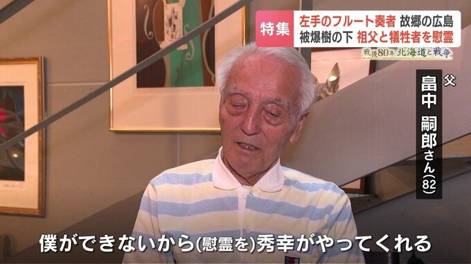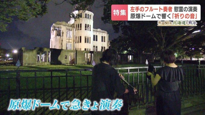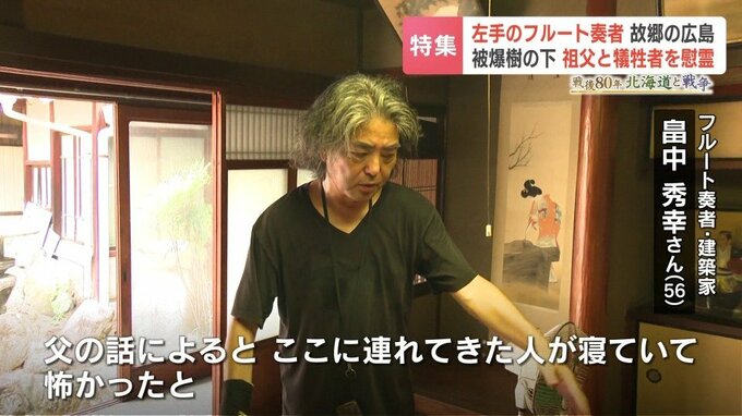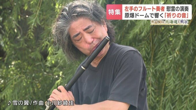 右半身まひの障害を抱えながら左手でフルートを演奏している札幌の畠中秀幸56歳さん。沖縄のあとに、畠中さんが慰霊の演奏をした地は被爆地、広島。故郷で祈りの音色が響きます。