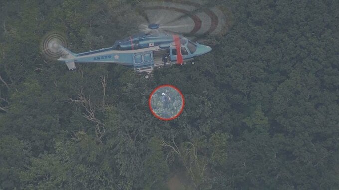登山者をヘリコプターで救出(14日・北海道斜里町)