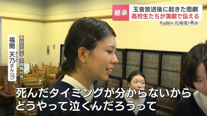 日本領だった樺太、いまのロシア・サハリン州で郵便局の女性電話交換手が集団自決した事件。「玉音放送」後に起きた悲劇を高校生たちが演じました。