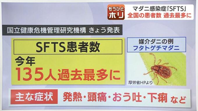 国立健康危機管理研究機構では19日、SFTSの2025年の患者数が速報値で135人となったと発表しました。