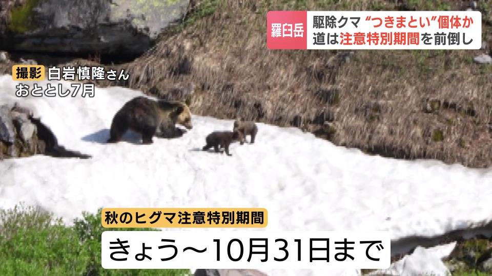 また、事故の数日前にも羅臼岳の登山道付近でクマが登山者に接近し、クマスプレーを使用したあとも登山者につきまとう行動が確認されていて、知床財団は見た目の特徴などから今回駆除されたクマと同一個体の可能性が高いとしています。