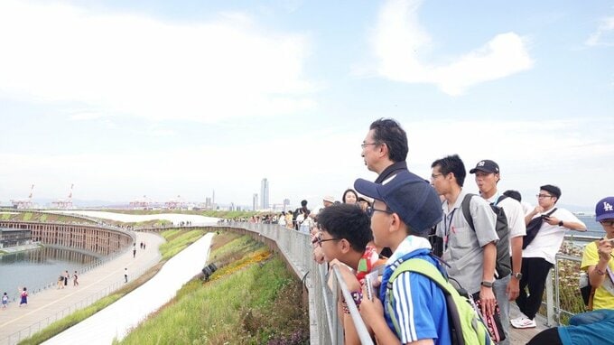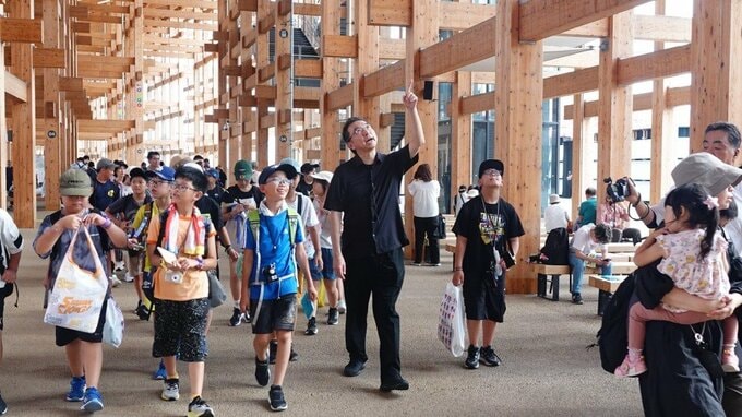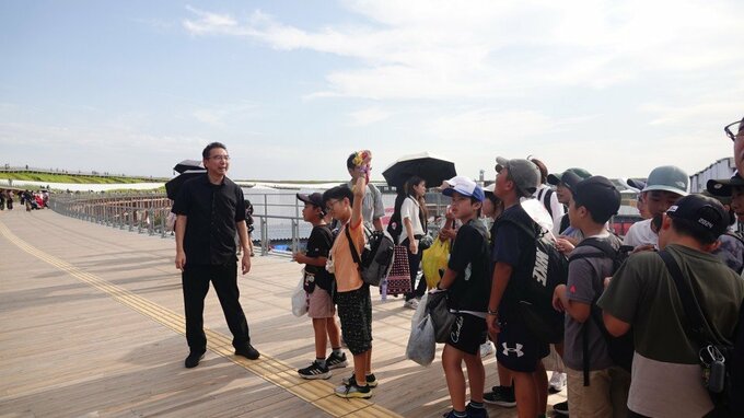 藤本さんは小学生たちを1周およそ2キロの大屋根リングへ案内し、リングの上と下を合わせて半周ほどを一緒に歩いたということです。