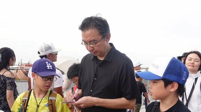 参加した山田竣太さん(小5)は「大屋根リングの上から見た万博はいろんなパビリオン、世界が集まっていて神秘的だった。会場内を歩いているだけでも楽しかった」と話し、藤本さんから大屋根リングが完成したときの気持ちを直接聞けたことを喜んでいました。
