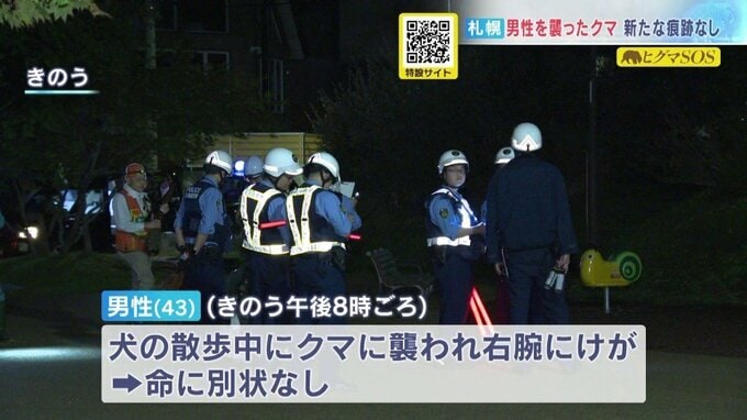26日夜、札幌市西区の公園で男性がクマに襲われけがをしました。警察やハンターが27日朝から付近を捜索しましたが、クマの痕跡はみつかっていません。