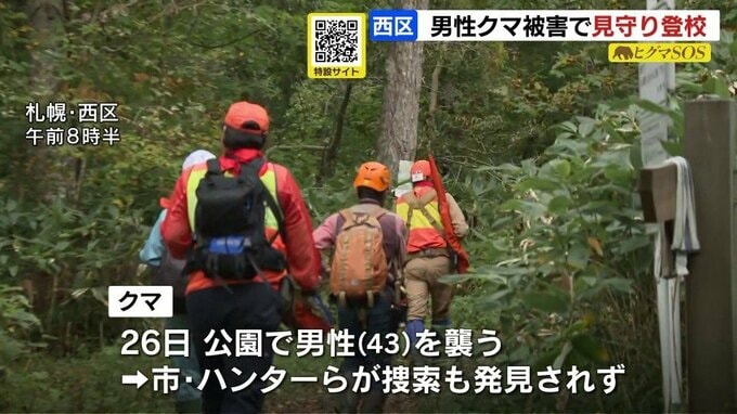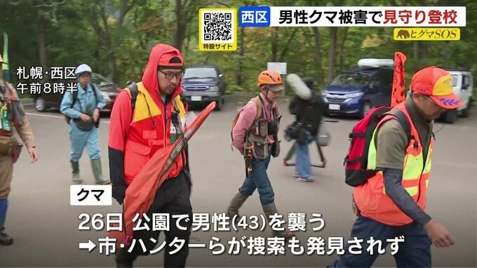 札幌市西区の公園で、男性がクマに襲われ大けがをした事故を受け、近くの小学校では29日朝、児童らが警戒の中で登校しました。
