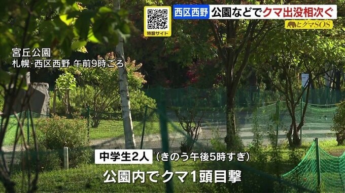 2日夕方から夜にかけて、札幌市西区の公園などでクマの出没が相次ぎ、警察や市が警戒を強めています。