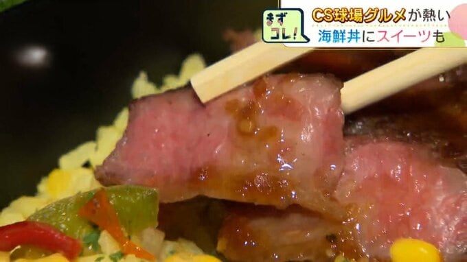 金粉を散らした海鮮丼にスイーツ…クライマックスファーストステージ期間限定で「史上最高峰の球場グルメ」登場 ファイターズ本拠地・エスコンフィールドHOKKAIDO 2025年10月8日(水) 17:44 国内 11日から始まるパ・リーグクライマックスシリーズファーストステージ。日本シリーズに向けた熾烈な戦いを前に、「球場グルメ」がアツいんです!馬場佑里香記者「こちらがクライマックスシリーズ限定のグルメです。…
