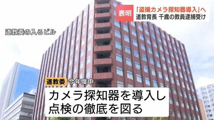 少女の盗撮画像を共有した事件を巡り、北海道千歳市の中学校教諭が逮捕されたことを受け、北海道教育委員会はカメラの探知器を導入することを明らかにしました。