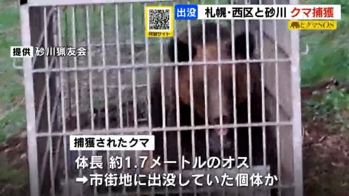 一方、札幌市西区西野でも午前6時半ごろ、箱わなにかかった体長約1.5メートルのメスのクマ1頭が駆除されました。