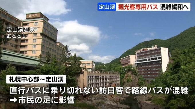 オーバーツーリズム問題の解消に向け、札幌中心部と南区の定山渓を結ぶ観光客専用バスの運行が10日から始まりました。