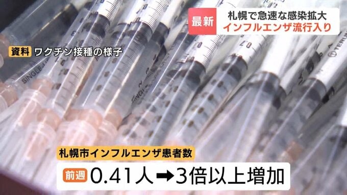 寒さや乾燥も一因なのでしょうか、札幌市は医療機関から報告されるインフルエンザの患者数が流行の目安を超えたとして流行が始まったと発表しました。