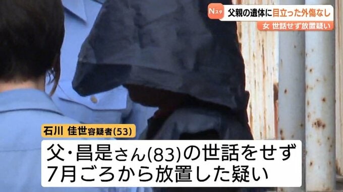 遺体に目立った外傷なし 父親に食事与えず放置した疑い 53歳女を送検「できることはしていたので…納得できない」と容疑否認 北海道釧路市 2025年10月12日(日) 18:02 国内 北海道釧路市の住宅で、80代の父親の世話をせず放置した疑いで53歳の女が逮捕された事件で、父親の遺体に目立った外傷がなかったことがわかりました。釧路市美原の派遣社員、石川佳世(いしかわ・かよ)容疑者は、…
