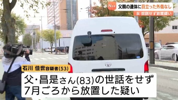 釧路市美原の派遣社員、石川佳世(いしかわ・かよ)容疑者は、同居する父親の昌是(まさよし)さんが高齢で、食事の準備などが難しかったにも関わらず、7月ごろを最後に世話をせず放置した疑いで、12日、身柄を検察庁に送られました。