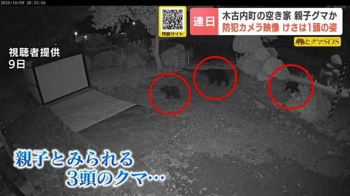 同じ空き家には、前の日の9日にも同じ親子とみられる3頭のクマが…。