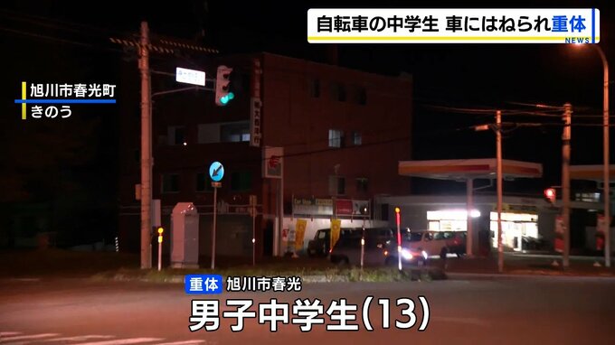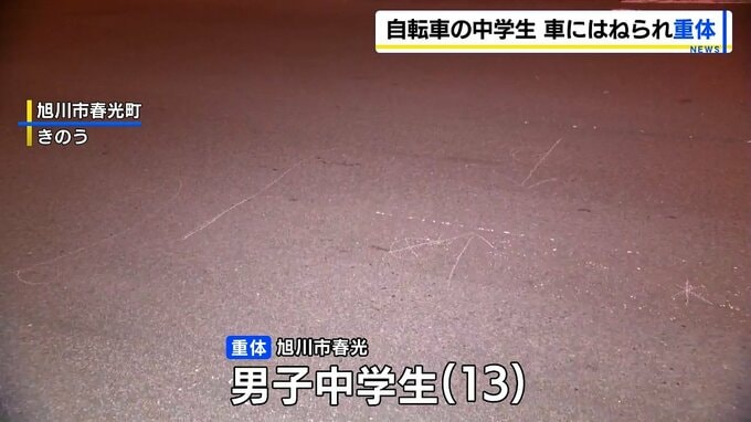 14日夕方、北海道旭川市で、自転車に乗っていた13歳の男子中学生が車にはねられ、意識不明の重体です。