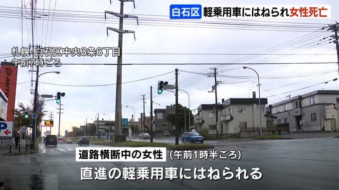 道路横断中の女性が軽乗用車にはねられ死亡 「相手の人をはねてしまったことに間違いない」車を運転していた67歳の女を逮捕 「環状通」と「平和通」が交わる交差点 札幌市 2025年10月15日(水) 12:18 国内 15日未明、札幌市白石区の道道で、20代から30代くらいの女性が車にはねられ死亡しました。15日午前1時半ごろ、札幌市白石区中央3条6丁目の道道「環状通」と「平和通」が交わる信号のある交差点で、道路を渡ってい…