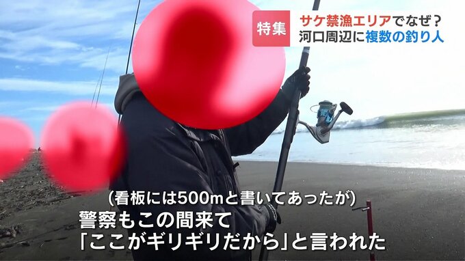 その場には、釣り上げたサケはなかったが、間違いなく釣りの禁止エリア内だった。