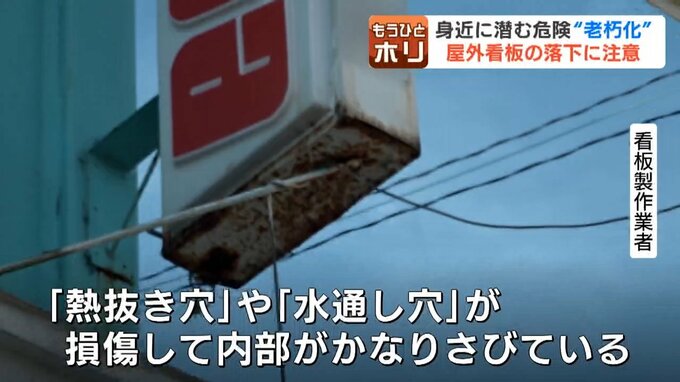 今にも落ちそうな看板や照明器具が見つかり、市は設置者やオーナーに連絡して、措置を促しました。