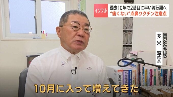 「9月の中旬下旬ぐらいからポツポツと来ていたけど、10月に入って増えてきた。やはり1か月以上の早い流行が始まったという印象」