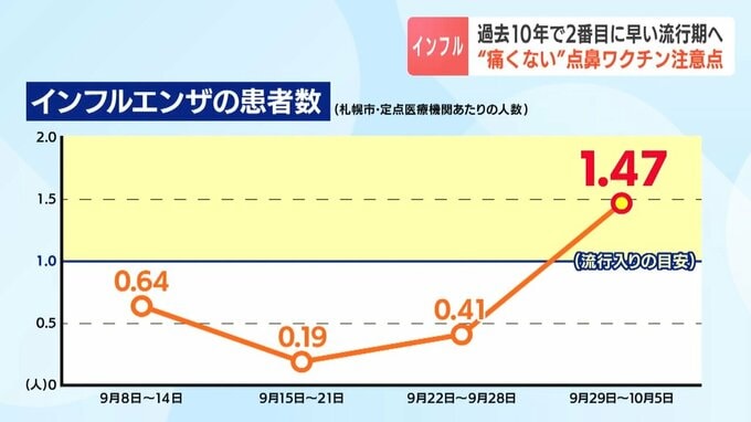札幌市では、2024年より1か月以上も早くインフルエンザが流行期に入りました。家族や自分のワクチン接種を考えている人も多いかと思いますが「痛くない」ワクチンに注目が集まっています。