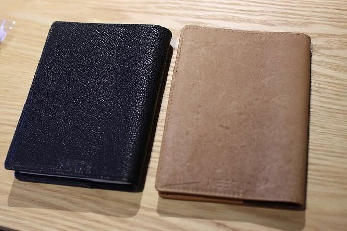 左がヒグマの革、右がエゾシカの革を使ったブックカバーです。