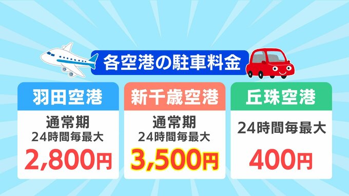 各空港の駐車料金はどうなっているのか、通常期の24時間最大料金で比較してみました。