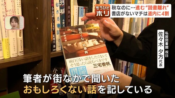 タイトルだけ見て、これ面白いねって言って手に取っていただく方も多い。例えばこういった「面白くない話事典」とか。筆者の方が、街中で聞いた面白くない話を記してある