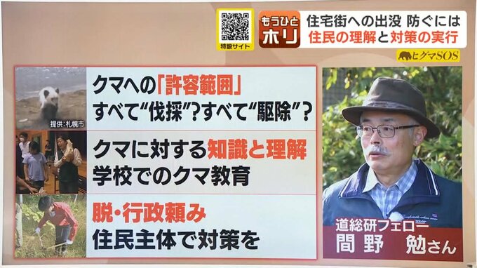間野さんは、今後の北海道内のクマの出没について、あと1か月ほどで終息し、クマは冬眠に入るとみています。本能的に、冬を越す最低限の養分さえ蓄えられれば、活動は収まるそうです。
