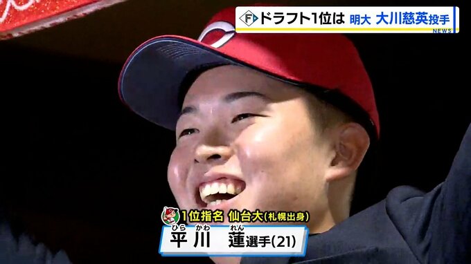 登別市出身の石垣元気投手がロッテから、札幌市出身の平川蓮選手は広島から1位指名を受けました。