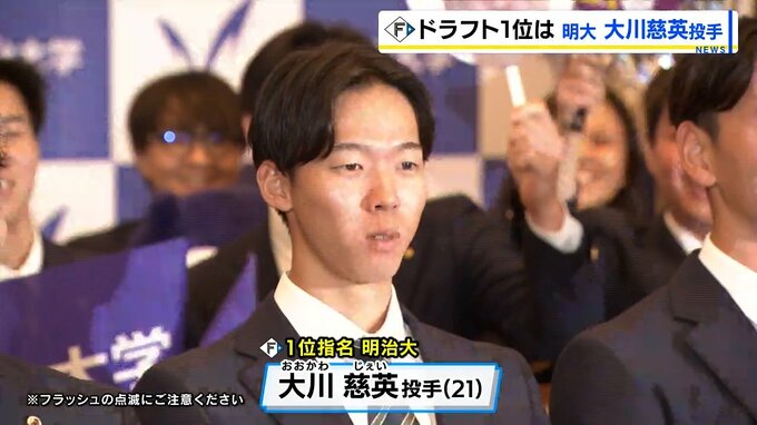 ファイターズは、明治大学の大川投手など育成をあわせ、計7選手の交渉権を獲得しました。