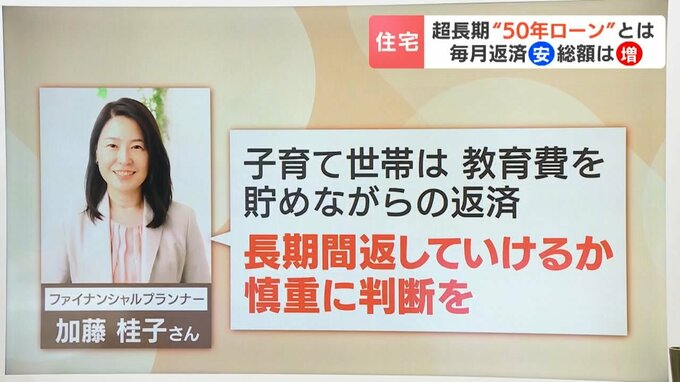 加藤さんは「子供がいる世帯は教育費を貯めながら返済しないといけない」、「長期間返していけるのか慎重に判断を」と話しています。
