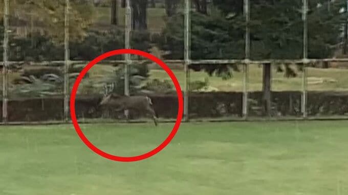 24日、札幌市北区にある ろう学校のグラウンドなどで、オスのシカ1頭が目撃されました。