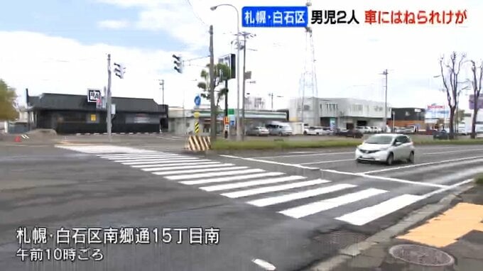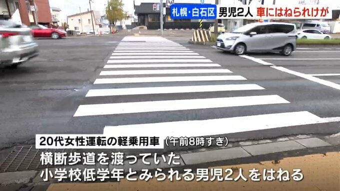 27日朝、札幌市白石区の交差点で、通学途中の小学校1年生の男の子2人が軽乗用車にはねられ、けがをしました。