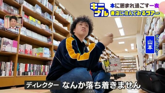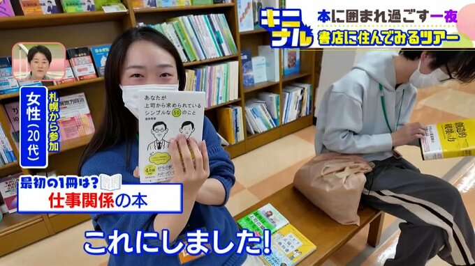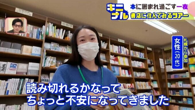 「(どうですか?夜中の3時に本に囲まれて)なんか明るいから全然3時って感じがしない。あんまりない経験だから表紙とかを見るだけでもすごい面白いなと感じる」