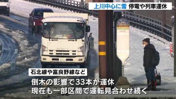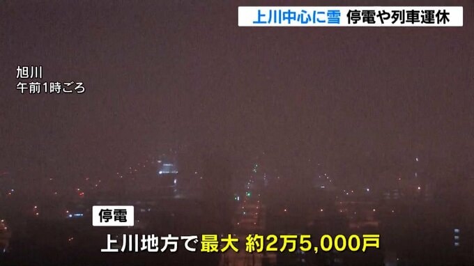 上川地方では雪の重みで送電線が絡むなどし、断続的に停電も発生。一時は旭川市をはじめ、合わせて約2万5000戸が停電しました。