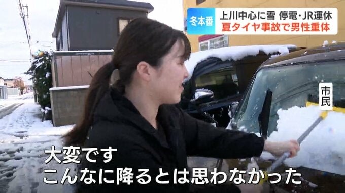 北海道内は、28日から29日朝にかけて上川地方を中心に雪が降り一時、旭川市などで最大2万5000戸が停電したほかスリップが原因とみられる事故で1人が重体です。