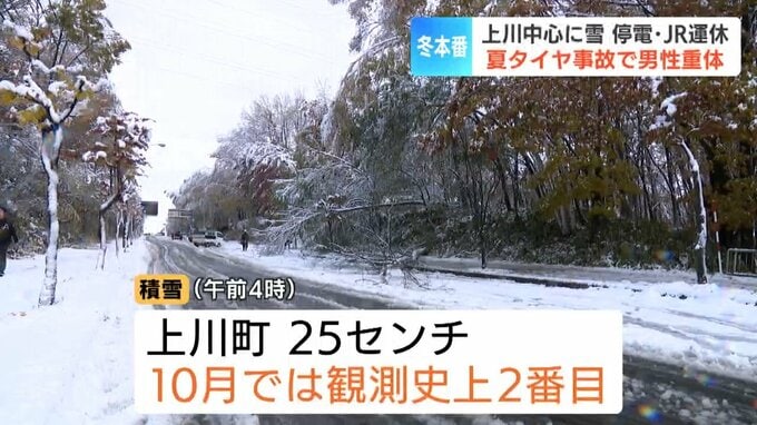 上川町では、午前4時に10月としては観測史上2番目の25センチの積雪を記録しました。