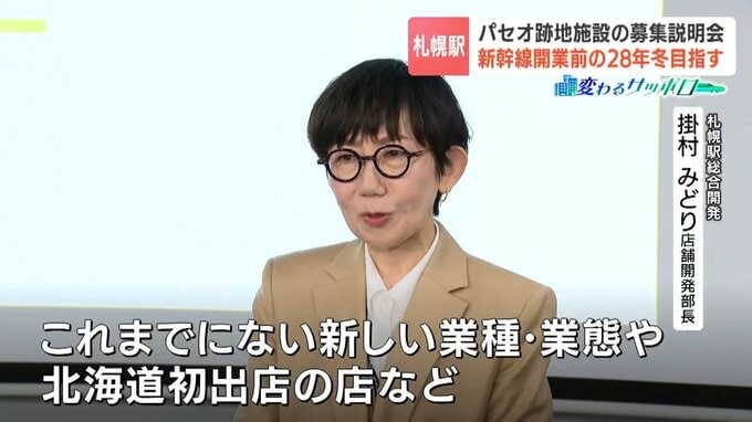 肝心の新幹線の延伸が大幅に遅れる中、JR北海道は、先行して新たな商業施設を2028年冬に開業予定で、広さは旧パセオと同等のおよそ1万6500平方メートル、店舗数は200に達する計画です。