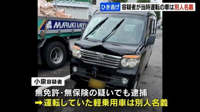 小泉容疑者は無免許・無保険で車を運転した疑いも持たれていますが、関係者によりますと、当時運転していた車は別人の名義だったということです。