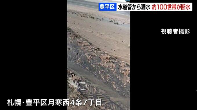 「敷地から水があふれて、道路上に流れている」水道管から漏水、約100世帯で断水 札幌市豊平区の住宅街 2022年12月9日(金) 12:09 国内 9日未明、札幌市豊平区の住宅街で、水道管から水が漏れているのが見つかりました。市の水道局が復旧工事をすすめていますが、作業は、夜までかかると見られています。 9日午前3時半すぎ、札幌市豊平区月寒西5…