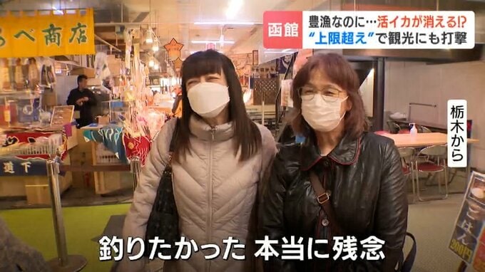 「イカ取れてると聞いてたので旅行計画した」「やっていなくて悲しい」