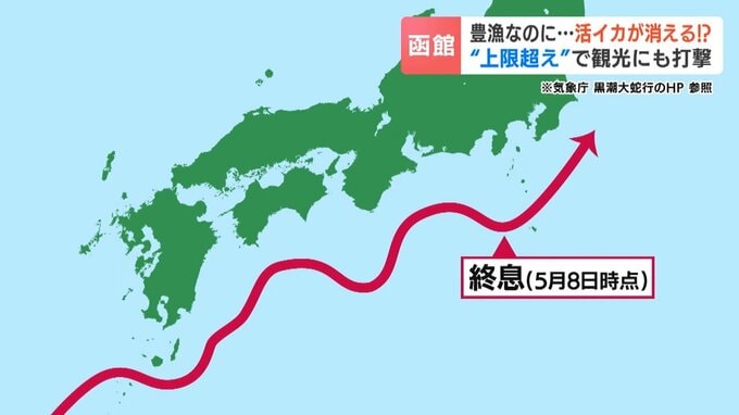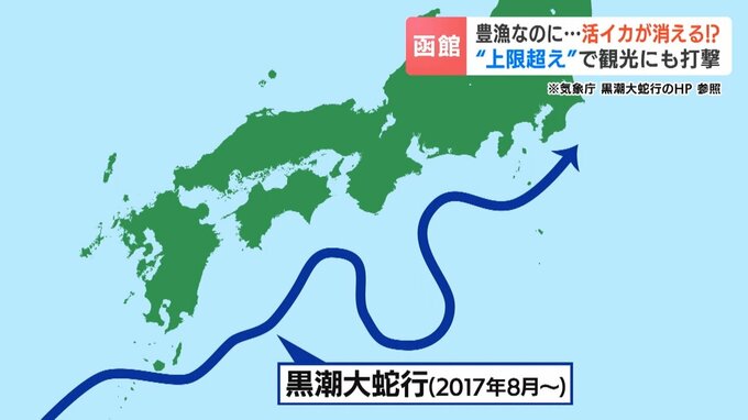 豊漁に転じた理由について専門家は、2017年から続いた「黒潮大蛇行」の終息でイカが北上しやすくなったことが要因だと推測します。