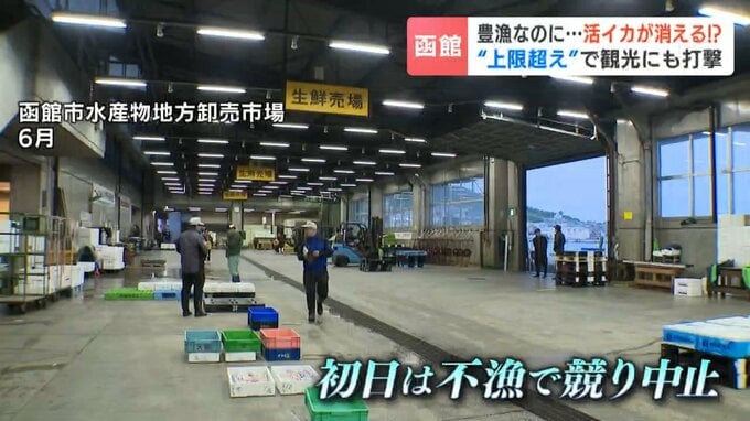 函館では、初日の漁獲がほぼなく初競りが中止される異例の事態に。