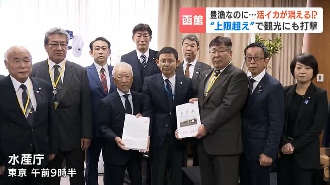 漁の停止命令を前に、30日、函館市の大泉市長らが水産庁を訪れ、漁獲枠の拡大などを求める要望書を提出しました。