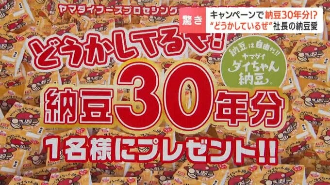 会社の設立30年を記念して行っているのが…「どうかしてるぜ、納豆30年分プレゼントキャンペーン」です!