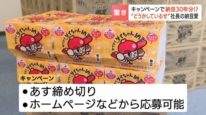 ご飯のおともとして納豆を愛しているという人も多いかと思いますがその納豆を、なんと30年分プレゼントするというキャンペーンを函館市の食品メーカーが行っています。そのわけは?